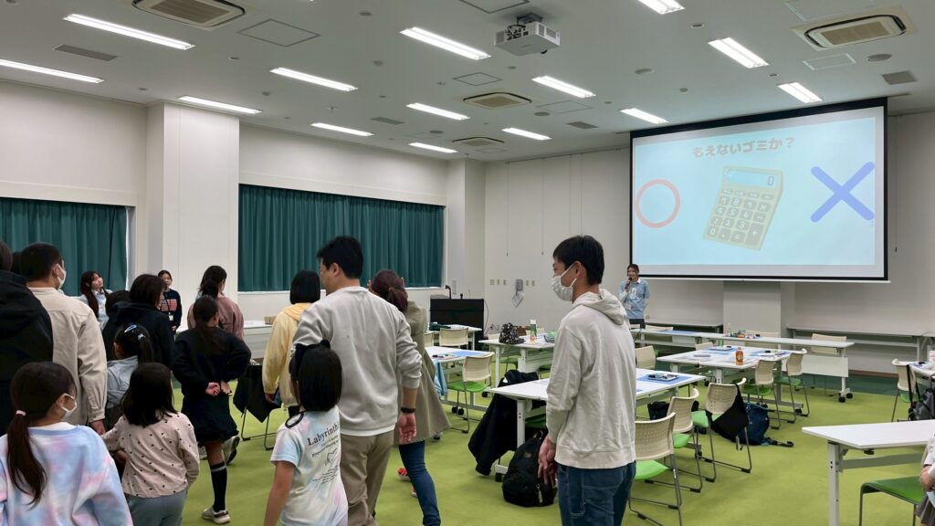 一見簡単なようで意外と難しい分別のルールに、大人も子どもも真剣そのもの。「えー!そうなんだ!」という驚きの声が上がる場面も見受けられ、最終的に全問正解者はいませんでした。このゲームは、楽しみながらもゴミ分別のヒントと重要性を再認識する、非常に有意義な時間となりました。