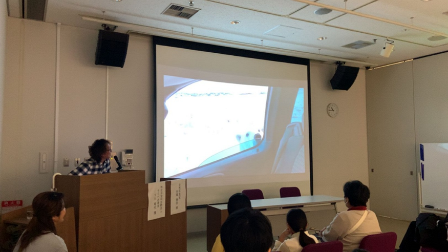 私は初めてこのワークショップに同行しました。特に印象に残ったのは、丹葉さんが「しろくまが人を襲い、結果として殺されてしまう事態を避けたい」という強い思いを持って撮影に向き合っている点でした。丹葉さんは、必ず車の中から撮影を行い、寒さの厳しい環境でもエンジンを切り、窓を開けて同じ空気の中で写真を撮ることで、しろくまを刺激しないように細心の注意を払っているそうです。そうした姿勢は、好きだからこそ守りたいというしろくまへの愛の表れだと思いました。また、「長年撮影を続ける中でしろくまの表情から気持ちを感じ取れるようになった」という言葉からも、しろくまを理解しようとする丹葉さんの姿勢が伝わってきました。参加者は、写真一枚一枚に込められた丹葉さんの思いに耳を傾けていました。