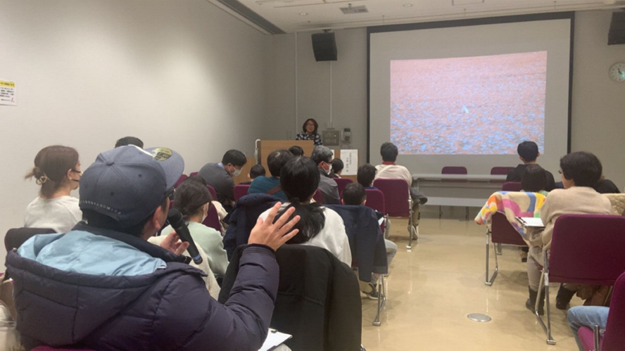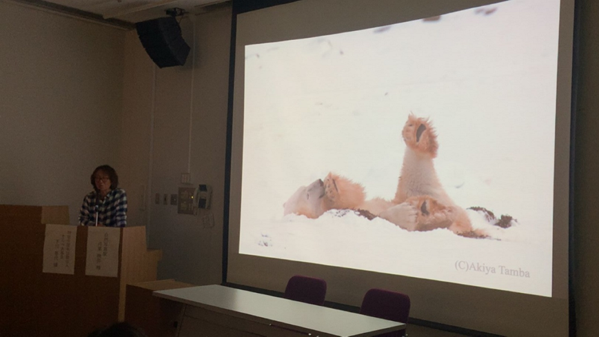 最後に丹葉さんは、「人間はどうやってしろくまと仲良く暮らしていけるのか」という問いを参加者に投げかけました。日本でも今年はクマをめぐる問題が注目されましたが、殺す・抑えることだけに目を向けるのではなく、共存していく視点が必要であることが強調されました。カナダのチャーチルでは長い間の試行錯誤の末、現在は人間の居住地域に現れた熊は、殺すのではなく、麻酔で捕獲し暫く暗く狭い場所に閉じ込めて、人間の居住地域には近寄らないように教えた後、また麻酔をしてヘリコプターで離れた場所へ運び、野生に返しているそうです。