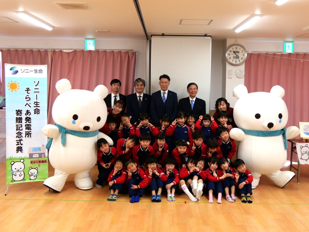第98基、99基、100基「そらべあ発電所」の公募は、ソニー生命保険株式会社(以下、ソニー生命)のご協賛により実施し、2025年10月~12月にかけてすべて設置は完了しています。これにより、ソニー生命による寄贈は27基(第99基目は26基目)となりました。